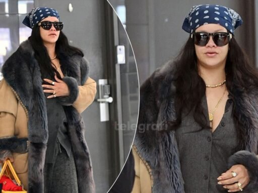 Rihanna u pa në New York City duke kombinuar rehatinë me stilin, me pantallona gri të errëta dhe…
