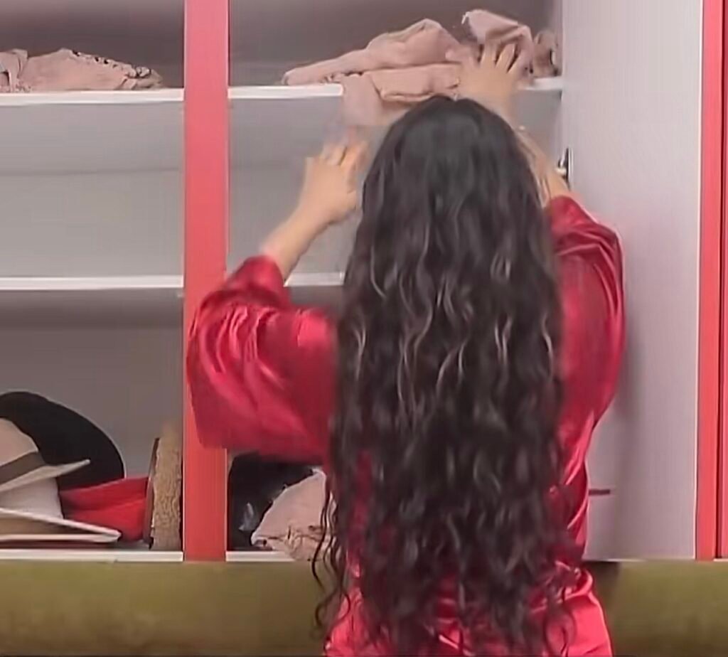 E vendosur ta realizojë lojën deri në fund, ajo filloi të kërkojë një vend të përshtatshëm ku peshqirët të mos binin në sy. Pas pak minutash kontrolli nëpër qoshet e lavanderisë, Alba gjeti strehën perfekte: një dollap i lartë ku askush nuk mendon të kërkojë.